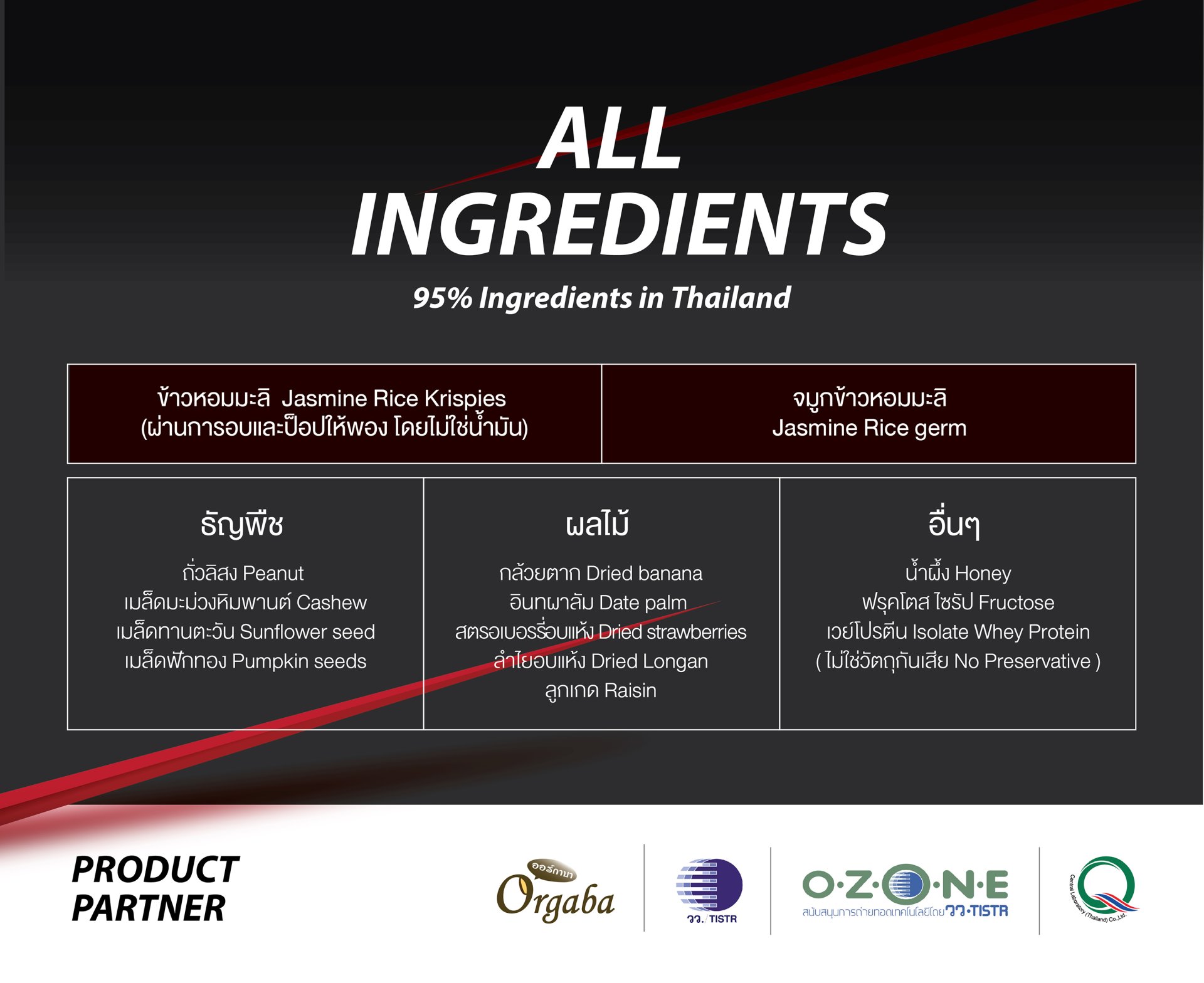 ด้วยเหตุนี้ ทำให้เราจึงได้ทำผลิตภัณฑ์อาหารดีๆ ที่เหมาะสมสำหรับนักกีฬา หรือผู้ออกกำลังกาย ในแบบของคนไทย เพื่อคนไทยโดยเฉพาะ และต้องขอขอบหน่วยงานต่างๆ ไม่ว่าจะเป็น สถาบันวิจัยวิทยาศาสตร์และเทคโนโลยีแห่งประเทศไทย มหาวิทยาลัยเทคโนโลยีราชมงคลอีสานสุรินทร์ และหน่วย งานอื่นๆ ที่ได้ช่วยสนับสนุน พัฒนาและวิจัยผลิตภัณฑ์ดีๆ แบบนี้ให้เกิดขึ้นมาได้