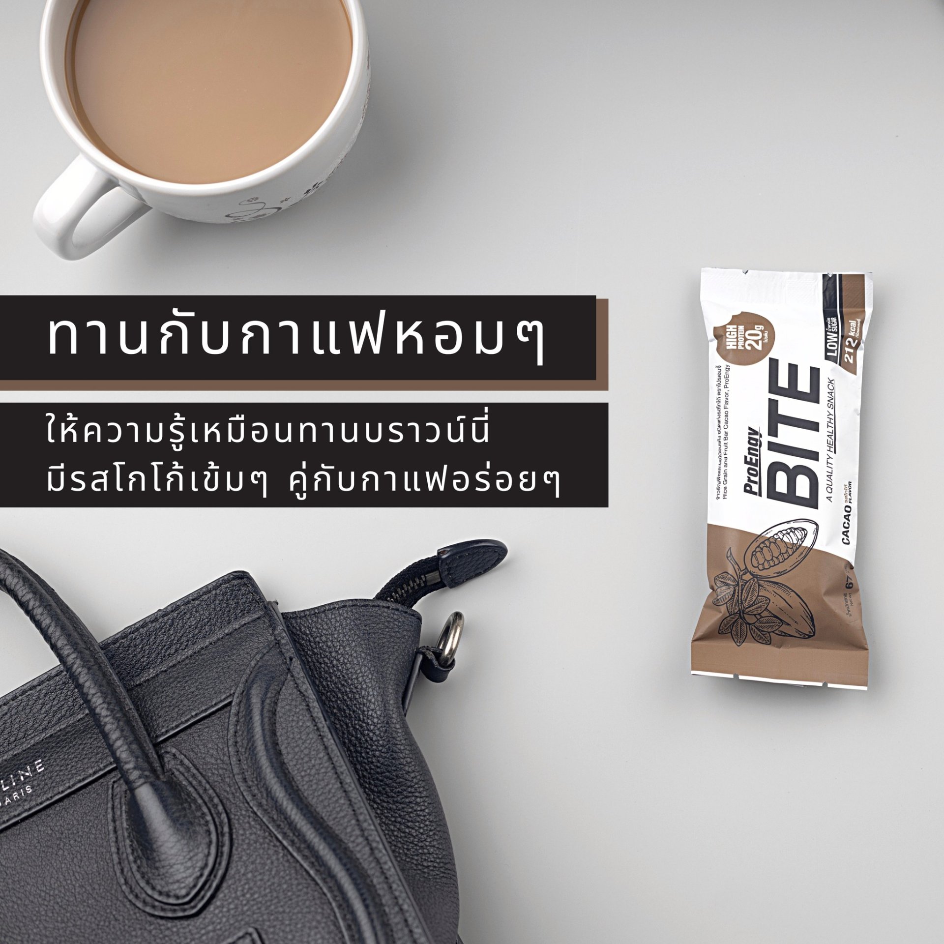 สำหรับสายกาแฟที่ทุกเช้าต้องดื่มซักแก้ว ไม่อย่างนั้นสมองไม่แล่น ตาไม่ตื่น ก็สามารถหยิบ ProEngy Bite ขึ้นมาทานร่วมกับการแฟได้ เพราะจะให้ความรู้เหมือนทานบราวน์นี่ ที่มีรสโกโก้เข้มๆ คู่กับกาแฟอร่อยๆ บอกเลยว่าฟินสุดๆ ไปเลย แอบบอกว่าจะทานคู่กับชาหรือนมก็อร่อยไม่แพ้กันเลยนะ